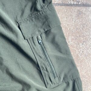 Upgrade your casual wardrobe with these stylish olive green cargo jogger pants. Perfect for everyday wear, these pants offer comfort and functionality with multiple pockets. Ideal for a relaxed yet trendy look. Approximately 36 inches top of waist to bottom of jogger leg. Five pocket, size Large