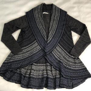 Sioni Gray Shawl Collar Bohemian Knit Cardigan Sweater Size S