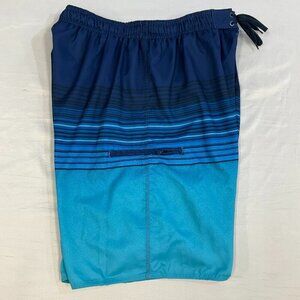 Men's BURNSIDE multi-blue color board shorts. Size Large, see photos for measurements. One zipper pocket on outside right side leg. One small inside waistband pocket. Brief-style mesh lining inside. These shorts are new with tags and in excellent condition.
