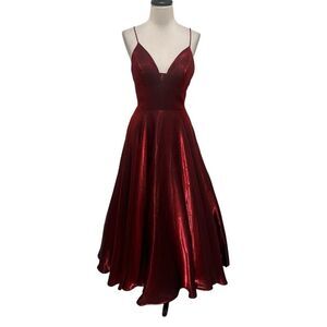 Sherri Hill Women's V-neck Spaghetti Strap Maxi Gown Wine Size 0