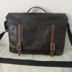 Fossil Black Leather Briefcase/Laptop bag/Work bag. Unisex.