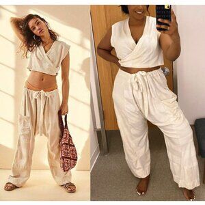 FREE PEOPLE Island Crop Top & Wide Leg Pants in Tea Size Small/Large
