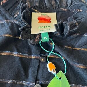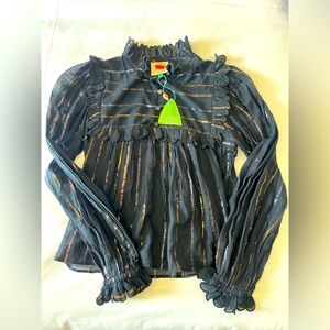 NWT Farm Rio Metallic Stripe Ruffle Shirt in Black XS ⭐️holes