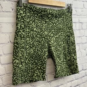 Athleta Ultimate Stash II 7" Biker Shorts Green Clouded Leopard Medium Athletic