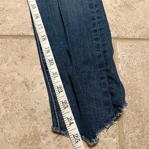 These ankle jeans have a really cute V in the front ankle. They also have the slimming line in the front part of the jeans as shown in the pictures above. Only selling these jeans because they do not fit me anymore.