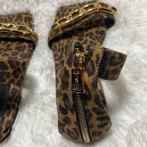 Good American Square Top Leopard Print Sandals with Chain Detail