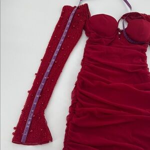 Oh Polly dress, the "St Germain" or "Embellished Long Sleeve Mini Dress in Red