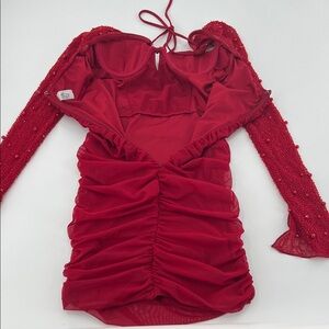 Princess Polly St. Germaine Red Bodycon Dress beaded sheer sleeve