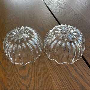 Elegant pair of crystal clear decorative bowls with intricate design. Perfect for home decor.