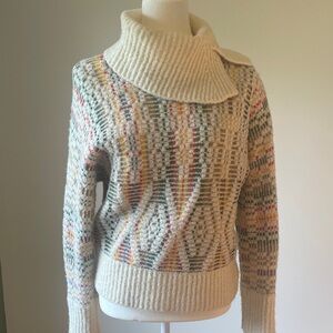 Anthropologie Cream Multicolor Cowl Neck Sweater