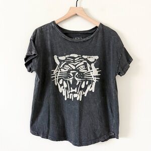 Vintage Canvas Tiger Graphic Tee Shirt in Washed Black Size M