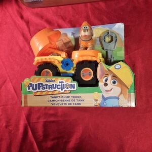 Join the fun with Disney's Pupstruction figure set. Includes vibrant characters Tank, Phinney, Roxy and Luna. Also in this bundle is Tanks orange dump truck. Perfect for imaginative play. Both are brand new in unopened packaging.