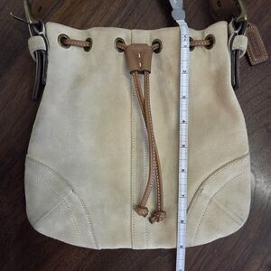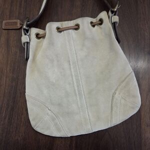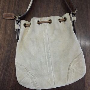 cream suede crossbody bag by Coach
