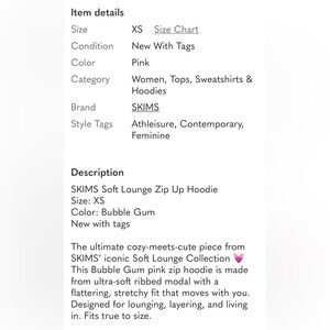 SKIMS Bubble Gum Pink Soft Lounge Zip Up Hoodie XS NWT