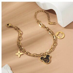 Playful gold jewelry set featuring a matching necklace, bracelet, and earrings with mixed charm accents for a fun, modern look.