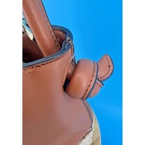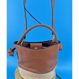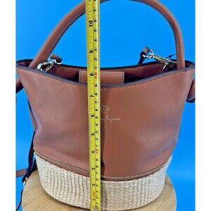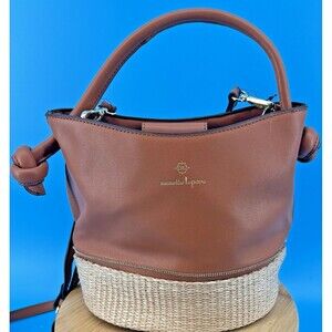 Nanette Lepore Reese Bucket Rattan Bottom Vegan Leather Bag Purse Brown/Tan