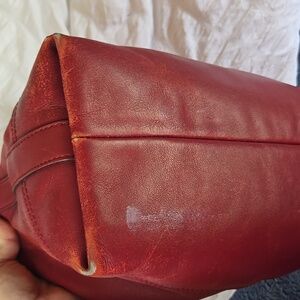 Elevate your style with the Coach Women's Burgundy Leather Handbag. Crafted from premium leather, this elegant bag features a rich burgundy color that adds a touch of sophistication to any outfit. Perfect for both casual and formal occasions. Callouts scratches but makes it look distressed leather look at pics