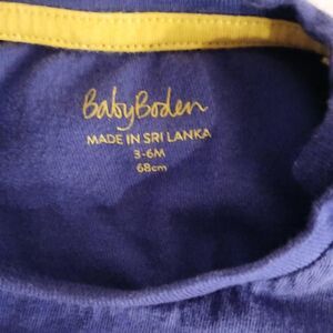 Baby Boden blue long sleeve shirt with dogs driving a dump truck and a backhoe construction truck in size 3-6 months.