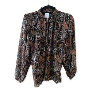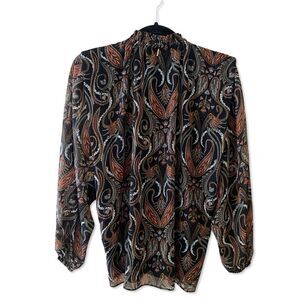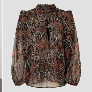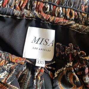 Misa Los Angeles Helena print Black Brown Puff sheer peasant Blouse NWT XXS