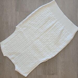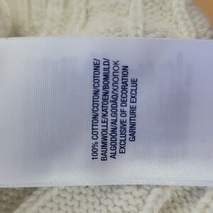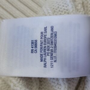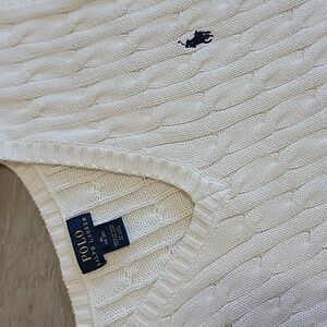 Polo Ralph Lauren sleeveless cable-knit sweater vest for boys in size XLarge (18-20). The sweater is in a solid white color and made of 100% cotton knit fabric. It features a V-neckline and a pullover closure, with a preppy style suitable for any boy's or girl's wardrobe.