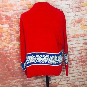 Vintage 80s Belle Pointe Red and Blue Button Down Cardigan Sweater