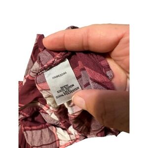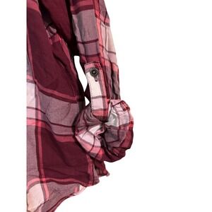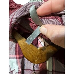 Womens Plaid Button Down Shirt Long Sleeve Burgundy Pink Lace Shoulder