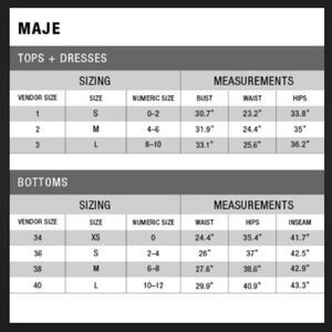 Please see size chart in photos for Maje sizing - please not Maje runs small
