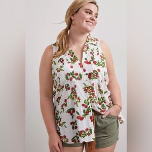NWT Vera for Anthropologie Floral Buttondown Tank in White, size 1X