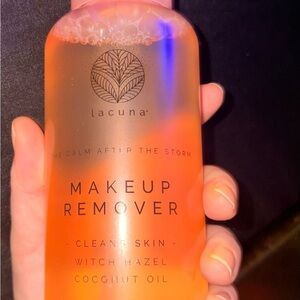 Experience the refreshing cleanse of Makeup Remover. Infused with witch hazel and coconut oil, this orange-hued formula gently removes makeup while soothing your skin.