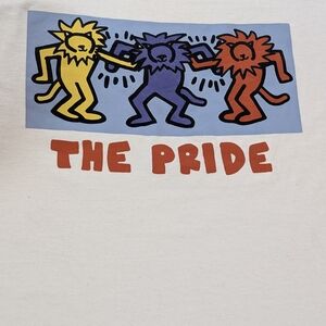 The specific design on this shirt is a rare 1980s original piece often associated with the "Heritage of Pride" by Keith Haring. this shirt has his print "buddies" on it. Classic Gildan heavy cotton tee in white with classic vintage Keith Herring artwork displayed on the front of it. Ideal for everyday wear. measurements are in pictures