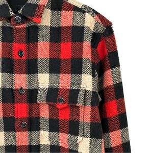 J.Crew Wool Flannel Red Black Cream Plaid Button Up Overshirt Shirt Jacket - M