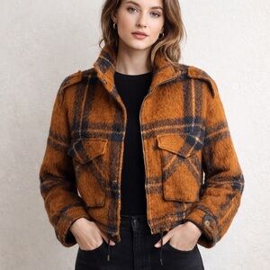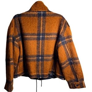 Nine West Orange and Black Plaid Teddy Jacket-size Large