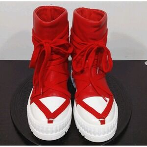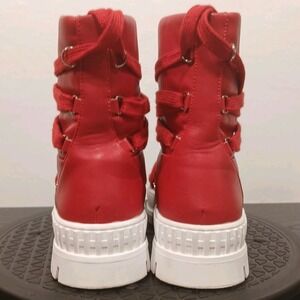 Liliana Richie-1 Cherry Red Chunky Lug Platform High Top Sneaker Boot Sz 8