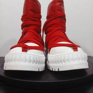 * Color: Vibrant Cherry Red with contrasting White platform and laces.