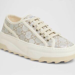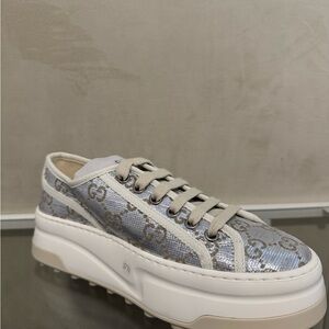 Gucci Women's Cream & silver GG canvas platform Sneakers Sz 37.5