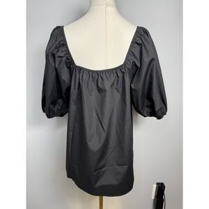 First Love by Lovelyn Black Puff Sleeve Bow Detail Blouse Square Neck M