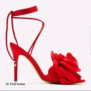 Step out in style with these stunning red floral heels. Perfect for any occasion, these shoes add a touch of elegance to your outfit.