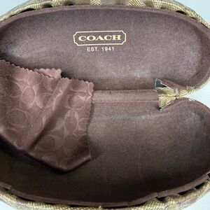Coach sunglasses case signature logo brown khaki with wipe protective case
