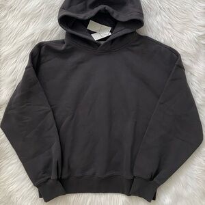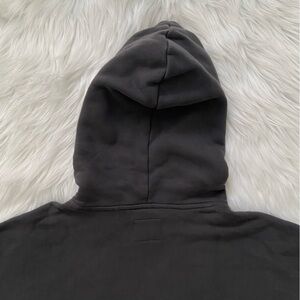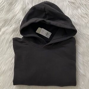popover hoodie in softaf max fleece fabric and classic sunday silhouette, featuring a drop-shoulder fit, banded hem and cuffs. size medium. color: dark grey