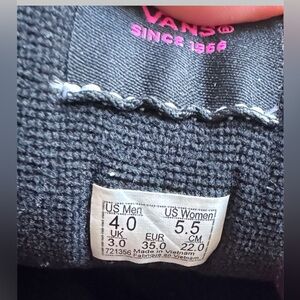 Classic Vans sneakers with a black base and pink accents. Comfortable and stylish design.