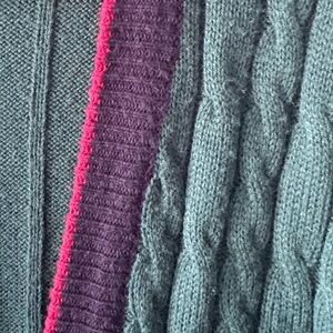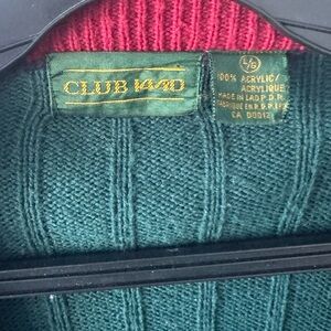 Vintage 1990’s Cable Knit Cardigan – Green with Red & Navy Trim (Club 1440 )