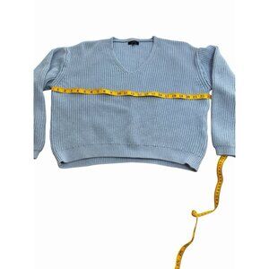 Quince Womens 100% Organic Cotton Fisherman V-Neck Sweater Sz L Sky Blue Classic
