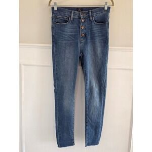J.Crew High-Rise Skinny Jeans Medium Wash Button Fly Raw Hem Size 27
