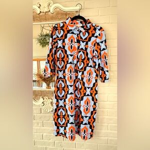 Jude Connally Long Sleeve Dress - Orange and Blue Geometric