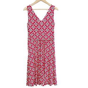 Boden Womens Effie Palm Print Stretch Jersey Dress Sleeveless US 8 Red White