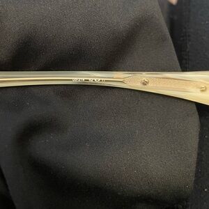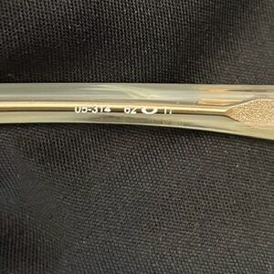 Features: These sunglasses feature scroll-engraved temples and warm brown lenses, offering 100% UV protection with Plutonite lenses. They are described as a rare and discontinued model. Comes with case and dust bag