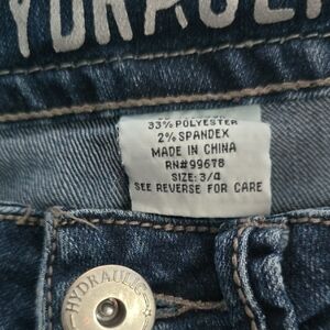 Elevate your style with these Hydraulic women's blue distressed jeans. Perfect for a casual day out, these jeans offer both comfort and a trendy look. Size 3/4