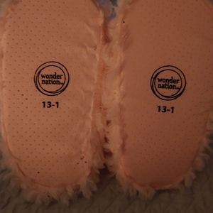 NWT Wonder Nation Cute fuzzy pink house slippers for girl size 13-1pm. I bought this from a boutique for my daughter in a size 6 and they sent me the wrong size. Never worn.