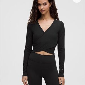 Nulu ribbed wrapped front long sleeve shirt heart