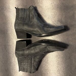 Jeffrey Campbell Gunner, western booties, ankle boots women, charcoal boots, leather booties, cowboy boot style, vintage western boots, distressed leather boots, pull on booties, low heel boots, fall footwear, minimalist boots, capsule wardrobe shoes